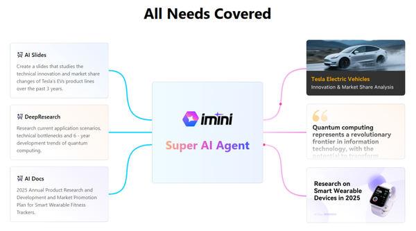 对于普通用户而言,iMini AI的出现标志着AI生产力工具的范式转变:不再需要学习复杂的提示词工程,也不必在多个平台间切换,只需输入需求,即可获得从数据到内容、从静态到动态的完整解决方案。这种“把机械工作交给AI,人类专注创新”的模式,或许正是未来工作的理想形态。