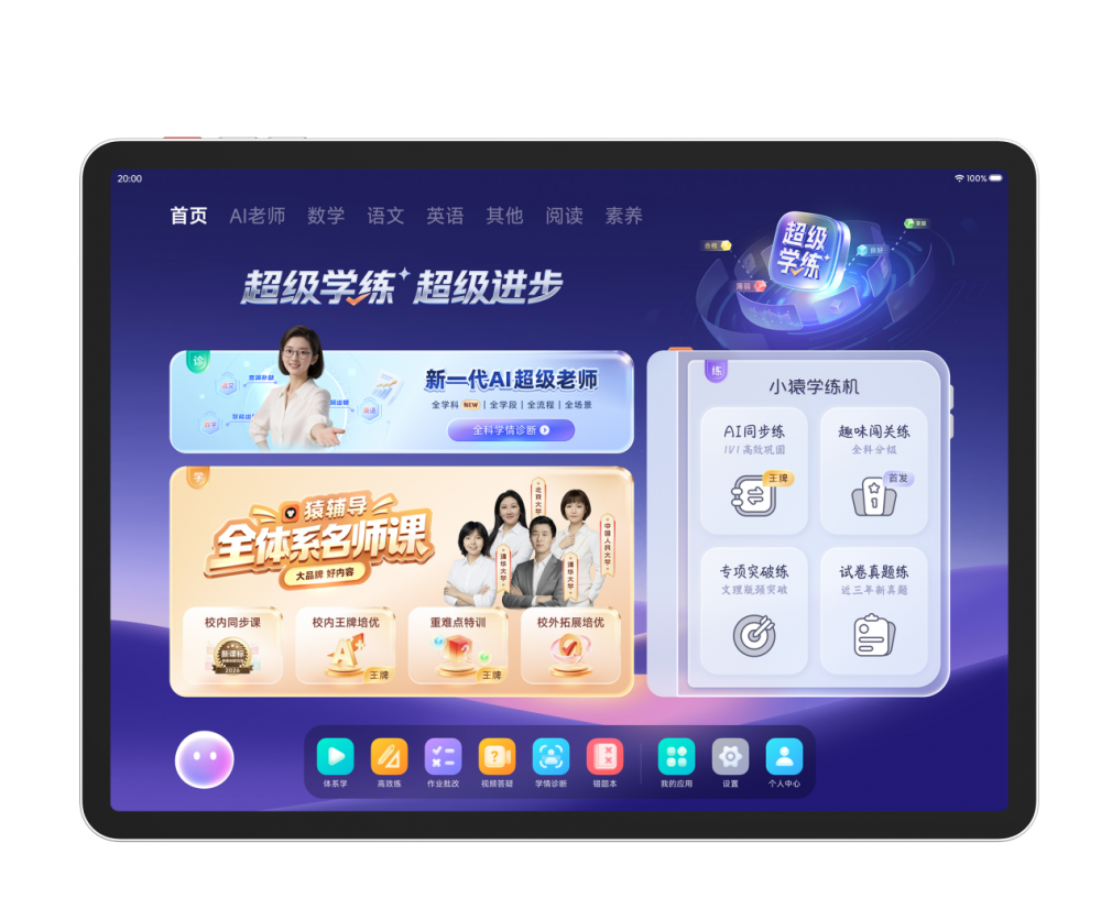 “最理想的使用场景是,用户在学习机上学完就练、练过即评,且效率最大化。效率最大化有多种维度,在用户方面,是从学到练不必跳转界面,学习路径高度明确,在厂商方面,是用最必要的课程和习题让学生学会知识点,路径规划高度精准。” 小猿AI学习机市场负责人说。